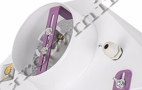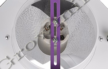Отражатель CoolMaster-а GipoLite выполненный из итальянского ячеистого анодированного алюминия с высокой степенью рассеивания и светоотражающей способностью в 96% (отражает лучше, чем зеркало) позволяет получить более плотный и ровный световой поток с минимальными потерями, создавая равномерное освещение. Он имеет распорную фиксацию, легко демонтируется и заменяется новым в случае необходимости. Патрон CoolMaster-а GipoLite крепится через щелевое отверстие, что позволяет регулировать лампу по всей длине кронштейна, тем самым изменять фокусировку. Чем ниже и дальше лампа от отражателя, тем шире освещаемое поле, а чем выше и ближе к отражателю, тем плотнее и уже эффективно освещаемое пространство под светильником.