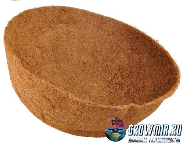Вкладыш из кокосового волокна для подвесных кашпо идеально подходит для выращивания растений, корни которых не любят влагу, но не могут обходиться без воздуха. Сажая такие растения, их корни желательно засыпать смесью измельченной коры, мхом с небольшим количеством очень рыхлого грунта.